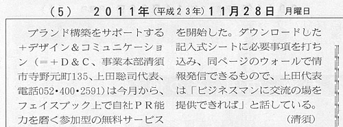 「ブラン道」が中部経済新聞に掲載されました。